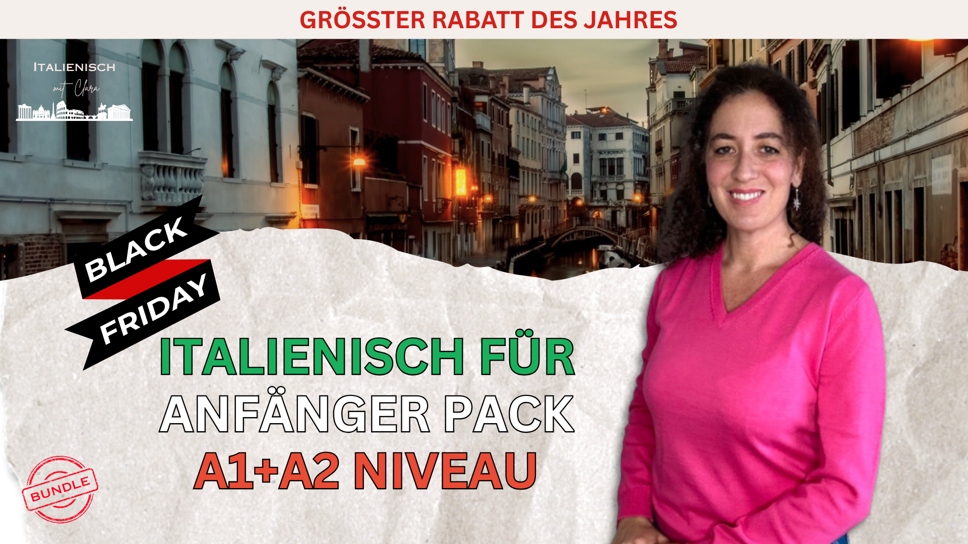 đïž Am Mittwoch, dem 26. NOVEMBER, werde ich die Anmeldungen fĂŒr mein Italienisch fĂŒr AnfĂ€nger Bundle (A1+A2) eröffnen, diesmal mit einem RIESIGEN RABATT: dem GröĂten des Jahres!